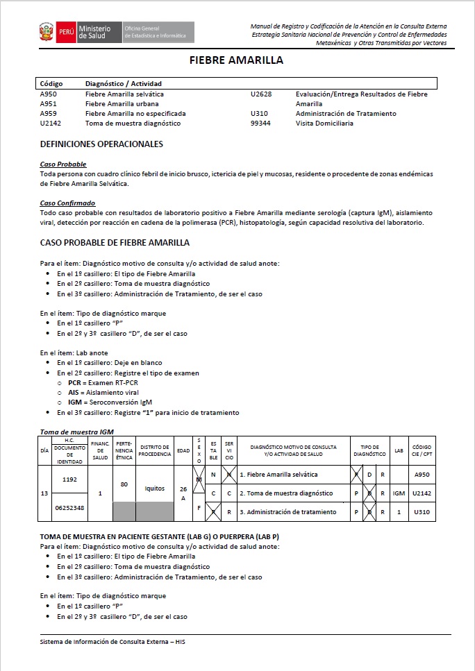 Manual de Registro y Codificación FIEBRE AMARILLA