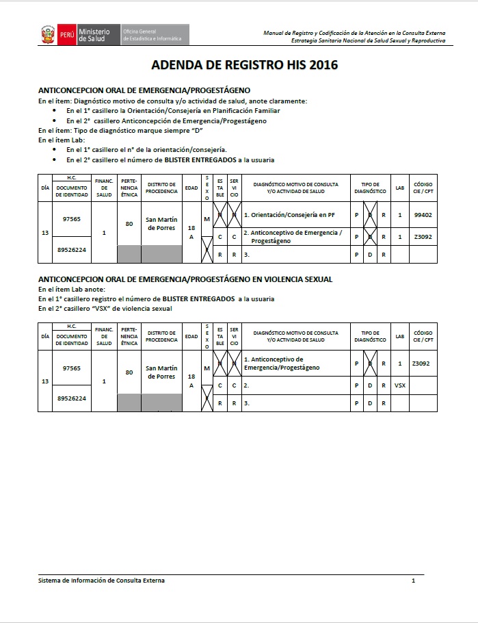 Adenda al Manual de Registro y Codificación SSR - Planificación Familiar